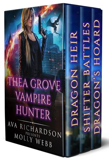 Welcome to Hollowmore. Hope you survive your stay… My name is Thea, and I'm a bounty hunter. My father rules a powerful shifter clan in the magical city of Hollowmore. I was supposed to follow in his footsteps, but I turned my back on that life. Now, in a city filled with deadly monsters, I take on the threats no one else can handle. Marcus was just another bounty – until I discovered he's a dragon shifter. Dragons are supposed to be extinct, and if his secret is revealed, his whole clan could be wiped out. I don't need that kind of trouble. But one look at Marcus's broad shoulders and smoldering eyes makes him kind of hard to ignore. He's also my only ally when a mysterious organization starts targeting shifters. With the clans at each other's throats, only an outsider like me has a shot at finding the truth. It'll trigger a firestorm of fury, for me and everyone I love. But I don't scare easy. And my enemies are about to find out how dangerous a cornered monster hunter and a dragon can be… This digital boxed set contains Books 1-3 of the Thea Grove Vampire Hunter series.