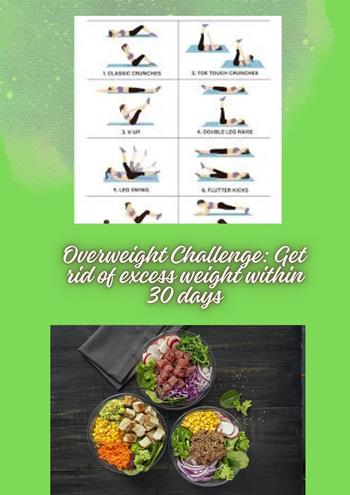 Overweight Challenge: Get Rid of Excess Weight Within 30 Days Take control of your health and transform your body with the Overweight Challenge! This empowering 30-day program is designed to help you shed excess weight, improve your fitness, and build sustainable healthy habits. What You'll Experience in the Overweight Challenge: Comprehensive Meal Plans: Receive expertly crafted meal plans that promote weight loss while ensuring you get all the nutrients you need. Enjoy a variety of tasty, balanced meals that support your metabolism and keep you satisfied. Effective Exercise Regimens: Follow a series of workouts tailored to help you burn calories and build muscle. The program includes a mix of cardio, strength training, and flexibility exercises suitable for all fitness levels. Weight Loss Tips and Strategies: Discover practical advice on how to manage portion sizes, make healthier food choices, and overcome common weight loss obstacles. Support and Motivation: Connect with a supportive community of individuals who share your goals. Share your progress, get encouragement, and stay motivated throughout your journey. The Overweight Challenge is your opportunity to make meaningful changes and achieve your weight loss goals in just 30 days. Embrace the challenge, commit to your health, and join a community dedicated to helping you succeed. Start today and take the first step towards a healthier, more confident you! 4o mini