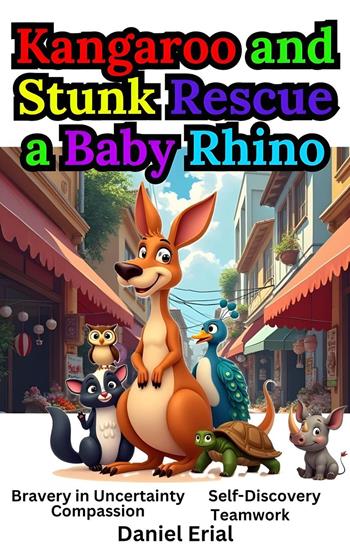 Synopsis:- A delightful tale set in the lively town of Quirkville. When spirited kangaroo Kiki and her clever but grumpy friend Stinky the skunk discover that mischievous hyenas are trying to kidnap baby rhino Ronnie, they spring into action to save him. With the help of a quirky crew—including a wise owl, a flamboyant peacock, and a timid tortoise—Kiki and Stinky devise a chaotic rescue plan. As they face slapstick challenges and comical misunderstandings, they learn that teamwork and friendship are the keys to overcoming any obstacle. In a heartwarming conclusion, the group celebrates their bravery and the importance of community, reminding young readers that standing up for what's right can lead to unforgettable adventures. Part Of The Book:- It was another bright and sunny day in the bustling, eccentric town of Quirkville. The air was filled with the chatter of the town's many animal residents, each one going about their quirky, daily routines. At the heart of the town, Kiki the kangaroo bounced energetically through the busy streets, her powerful legs propelling her forward with each enthusiastic hop. Kiki was always full of energy, never able to sit still for long, and today was no different. She was out and about, looking for her next adventure. "Something exciting is bound to happen today!" she said to herself with a grin. But little did she know, excitement was already brewing—and it wasn't the fun kind. Across town, in the shade of the big, old baobab tree, Kiki's best friend Stinky the skunk was lounging. Stinky, in stark contrast to Kiki's boundless energy, was a grumpy, no-nonsense sort of fellow. He preferred quiet and peace, especially after lunch, when his belly was full, and the sun was warm on his black-and-white fur. The last thing Stinky wanted was excitement. "Ugh," he muttered, rolling his eyes as Kiki hopped toward him. "What are you so happy about this time?" "Stinky!" Kiki exclaimed, skidding to a stop in front of him. "I've got a feeling something big is going to happen today. I can sense it!" Stinky yawned and scratched his head lazily. "Yeah, yeah. Every day's big for you. Can't a guy nap in peace?" Before Kiki could respond, something unusual caught her eye—a group of scruffy, sneaky-looking hyenas lurking around the corner of the town's market square. They were up to no good, and Kiki knew it. "Hold on, Stinky," she said, her playful tone turning serious. "What are those hyenas up to?" Stinky lifted an eyebrow and glanced over, immediately narrowing his eyes