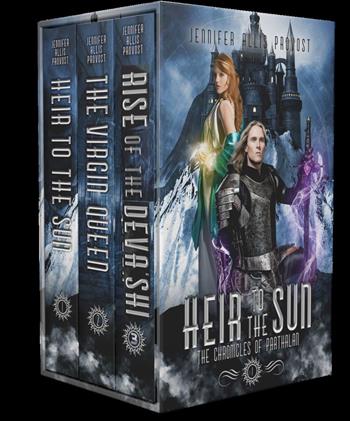 This boxed set contains the Chronicles of Parthalan books 1, 2, and 3 Heir to the Sun The Virgin Queen Rise of the Deva'shi