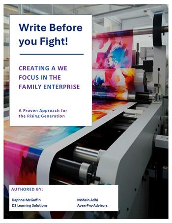 This e-book was created as a guide for rising generation members of the family enterprise who struggle to get traction and alignment around the planning and implementation of an intergenerational transition. Some are frustrated that they don't have a way to voice their ideas for diversification, innovation or sustainability of the family enterprise. Many feel that the senior generation is reluctant to let go of the reins signaling a lack of confidence in the rising generation's capabilities. Others face real obstacles to their involvement because of birth order or gender. Their concern is increasing. There is a real danger that these would-be successors will either push too hard and disrupt family relationships, or totally back-off and leave the family business altogether. The better option is to lead them through a proven approach to finding a unified path forward. An easy read at less than 60 pages, this guide isn't intended to be a Harvard or Ivey teaching case; it is a practical manual for following a proven process. The guide examines the journey to a positive outcome from the perspective of an intergenerational family that is representative of scores of families that have followed our proven approach. It is offered as a process for both the rising generation and those mentors who are committed to helping these would-be successors increase their ability to understand and appreciate differing perspectives while in pursuit of a common interest. The primary purpose of the guide is not to illustrate how a mentor or advisor might help a family overcome every possible roadblock or hurdle, but rather to help the rising generation understand the importance of a family learning approach and how to follow the learning process. In addition to allowing the reader to experience the process, the embedded case illustrates the benefits of the rising generation working with a family enterprise mentor — one who understands the differing perspectives in a multigenerational organization and can act as a bridge between generations to facilitate difficult conversations and inspire action towards a common interest.