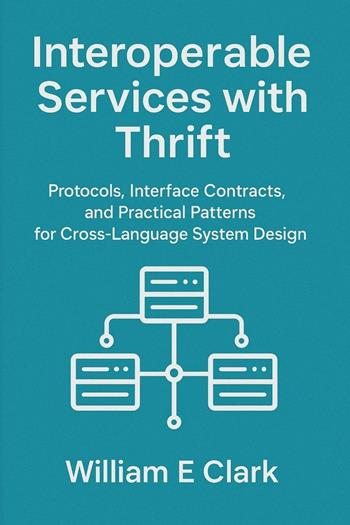 Interoperable Services with Thrift: Protocols, Interface Contracts, and Practical Patterns for Cross-Language System Design is a pragmatic guide for architects, engineers, and technical leaders who must build resilient, language-agnostic services. Beginning with Apache Thrift's origins and design goals, the book explains why Thrift remains a powerful choice among RPC frameworks and lays out core concepts—transport mechanisms, serialization protocols, and interface definition languages—that form the foundation of dependable cross-language communication. The heart of the book delivers a thorough, hands-on exploration of Thrift's protocol internals, serialization strategies, and advanced IDL design patterns, with concrete advice on code generation, language bindings, testing, and integration into heterogeneous ecosystems. Readers will learn actionable approaches to type mapping, versioning, and backward-compatible evolution, alongside implementation patterns and deployment models that span legacy, cloud, and hybrid environments. Practical chapters cover performance tuning, observability, and automation in continuous delivery pipelines so teams can ship reliable interfaces at scale. Closing with forward-looking perspectives, the book addresses security best practices for polyglot architectures, real-world reliability engineering, and architectural integration with service meshes, cloud-native platforms, and event-driven systems. It surveys community extensions, interoperability trade-offs, and open research directions, equipping practitioners to design and operate future-ready services that interoperate cleanly across languages and platforms.