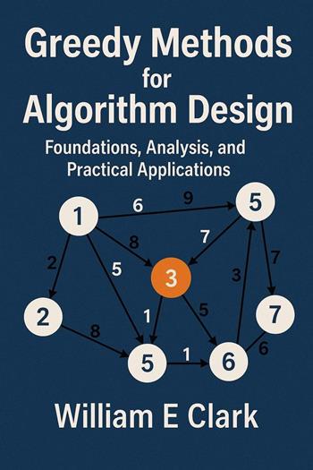 Greedy Methods for Algorithm Design: Foundations, Analysis, and Practical Applications offers a rigorous, comprehensive introduction to one of the most influential paradigms in algorithm design. Beginning with precise definitions and core principles—such as the greedy-choice property and optimal substructure—the book explains when and why greedy approaches succeed or fail. It systematically contrasts greedy methods with related paradigms like dynamic programming, presents essential proof techniques and canonical counterexamples, and is written to be accessible to advanced students, practitioners, and researchers alike. The text develops the mathematical foundations needed to analyze greedy algorithms, including matroid theory, greedoids, exchange arguments, and linear programming duality, and uses these tools to derive correctness proofs and approximation guarantees. These principles are applied across a broad range of canonical problems—minimum spanning trees, shortest paths, data compression, and resource allocation—and extended to advanced strategies such as randomized, adaptive, and online greedy schemes. Special attention is given to the unique challenges that arise in graph algorithms, combinatorial optimization, and machine learning, illustrating both the versatility and the limits of greedy design. Beyond theory, the book addresses practical concerns of efficient implementation, from choice of data structures and profiling techniques to parallel, distributed, and cloud- and edge-computing deployments. Closing chapters survey emerging applications in fields such as bioinformatics and blockchain, explore hybrid metaheuristics and open theoretical problems, and consider the broader ethical and societal implications of deploying greedy methods. Altogether, this volume serves as an authoritative reference for mastering greedy methods in both foundational analysis and real-world practice.