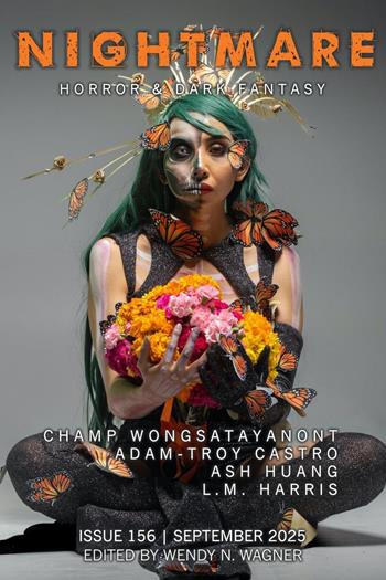 NIGHTMARE is a digital horror and dark fantasy magazine. In NIGHTMARE's pages, you will find all kinds of horror fiction, from zombie stories and haunted house tales, to visceral psychological horror. Welcome to issue #156 of NIGHTMARE! We have original short fiction from Champ Wongsatayanont ("Autogas Ferryman") and Ash Huang ("Safe Face"). Our Horror Lab originals include a flash ("Finishing Touches") from Adam-Troy Castro and a poem ("Blood-Orange") from L.M. Harris. We'll be serving up the latest installment of our column on horror, "The H Word," plus author spotlights with our authors. Adam-Troy Castro pens another fun media review.