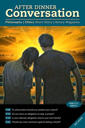 Rated "Most Popular Fiction Magazine 2024" by Chill Subs Named Top 10 "Best Lit Mags of 2023, 2024" by Chill Subs Rated "Top 50 Fiction" by Substack Delight in intriguing, thought-provoking conversations about ethics, philosophy, and social issues! After Dinner Conversation is a monthly literary magazine publishing short fiction. Each issue features both established writers and up-and-coming authors who contribute fascinating philosophical insights on controversial topics like marriage equality, assisted suicide, the meaning of death, animal rights and defining your "purpose." It's time to go deep in search of truth! If you love reading imaginative short stories on hot topics that make your brain think deeply but also have you laughing out loud... then this magazine is for you! "After Dinner Conversation" Magazine - June 2025 Deafening: Deaf parents of a hard-of-hearing child insist she be enrolled in a special school for the deaf. One More Day: A depressed man convinces a woman about to jump off a bridge life is worth living. The Money: A lottery-winning couple must decide between their own future, and that of a sick child. What Do Friends Say?: The narrator warns his friend's newest girlfriend of the week to run for the hills. Off-Road: A curious driver gives a ride to a revolutionary protester and joins their cause. Dangerous Ideas: A government employee shows up to capture, and destroy, the world's first foolproof "Are we living in a simulation" test machine. Mahabbah: A scientist creates a virus that increases people's empathy and releases it into the world. After Dinner Conversation is an award-winning independent nonprofit publisher. We believe in fostering meaningful discussions among friends, family, and students to enhance humanity through truth-seeking, reflection, and respectful debate. To achieve this, we publish philosophical and ethical short story fiction accompanied by discussion questions. ??? If you enjoy this story, subscribe via our website to "After Dinner Conversation Magazine" and get this, and other, similar ethical and philosophical short stories delivered straight to your inbox every month. (Just search "After Dinner Conversation Magazine")???