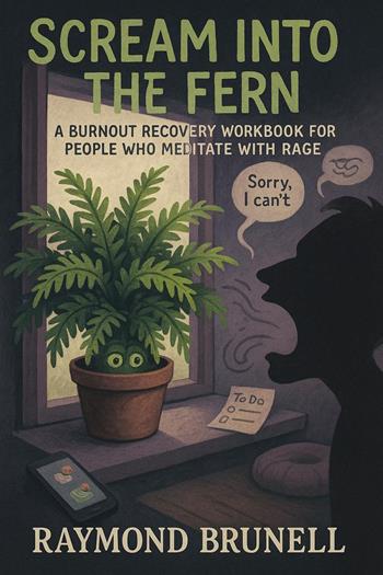 SCREAM INTO THE FERN: A Burnout Recovery Workbook for People Who Meditate with Rage Not all spiritual journeys involve gratitude journals and sunrise yoga. Some involve screaming silently into houseplants while your sanity unravels. "Scream Into the Fern" is the anti-wellness wellness book for people sick of being told to manifest their best life when they're just trying to survive their current one. This 30-day workbook offers daily lessons, practices, and "guided screams" that acknowledge what other self-help books won't: sometimes life is a dumpster fire, and toxic positivity only adds to the flames. Your companion? A silent, judgmental fern—the perfect therapist for people too tired to maintain eye contact with humans. It absorbs your carbon dioxide and complaints with equal efficiency, and unlike wellness coaches, it will never tell you to just drink more water. Inside, you'll discover: Why your introversion isn't a character flaw needing "fixed" How "good vibes only" is emotional gaslighting in a motivational font Why work-life balance is a myth sold by people who've never chosen between sleep and rent That "everything happens for a reason" is what people say when they can't think of anything helpful Why you don't need to earn rest through productivity That burnout isn't your personal failing—it's a system designed to extract maximum productivity from your soul Each day includes a brutally honest lesson, a practice that won't make you roll your eyes, and a guided scream to validate your reasonable frustrations with modern life. This book is for you if: Meditation makes you compose grocery lists instead of finding inner peace "Just think positive!" makes you contemplate crimes Your self-care sometimes involves rage-cleaning at 2 AM "Boundaries" is no longer a suggestion but a survival strategy You're exhausted but not broken, with just enough energy for one silent scream daily By day 30, you won't be fixed—because you were never broken. You'll just be more comfortable being imperfect in a world profiting from your insecurities. "Scream Into the Fern" is your permission slip: feel your feelings without filters, set boundaries without guilt, and accept that sometimes everything sucks, and that's valid. The fern believes in you, even when you don't. From Raymond Brunell, the honest voice behind "The Productivity Cult Handbook," comes another darkly humorous guide to surviving modern life with your sanity semi-intact.