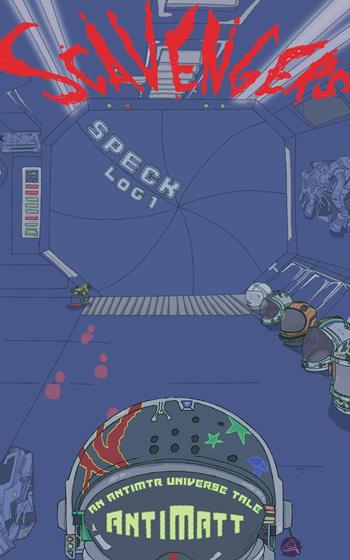 What's to be done when even the vast reaches of the galaxy become a trash dump for MegaCorps that don't want to waste a single chip dealing with their broken toys? At SxS, we do the only thing that makes sense: harvest that sh*t for everything it's worth. The Speck and its crew arrive at their next jobsite–a ridiculously huge abandoned freightliner–with their typical dreams of untold spoils and credit chips for eyes, but, this time, there's something seriously strange going on in space. Scavengers is part of the Antimtr entertainment universe and is an experiment in light, episodic literature for the modern humie's short attention span. Think of it like a TV series, only without the picture… or the sound. Season 1, Speck, will be released monthly in 3 60ish page episodes (Logs). The next log will release 08/08. If you finish before then, search Antimtr to see more of our super stellar stuff! It began with a ping.