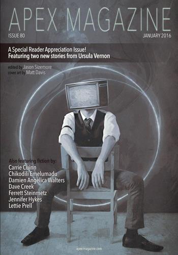EDITORIAL Words from the Editor-in-Chief by Jason Sizemore FICTION "The Tomato Thief" by Ursula Vernon "That Lucky Old Sun" by Carrie Cuinn "Riding Atlas" by Ferrett Steinmetz "The Open-Hearted" by Lettie Prell "Soursop" by Chikodili Emelumadu "Bones of the World" by Jennifer Hykes "Razorback" by Ursula Vernon Paper Tigers Excerpt by Damien Angelica Walters "Kutraya's Skies" by Dave Creek PODCAST FICTION "The Open-Hearted" by Lettie Prell, narrated by Lisa Shininger POETRY "RX-200 Series: It's Everything You Need" by Samson Stormcrow Hayes "The Upside of the Cataclysmic Meteorite Event" by Zebulon Huset "The Doctor's Assistant" by Anton Rose "In the Far Future, Billy Experiences the Most Powerful Drug Known to Man" by Greg Leunig "Automaton" by Bianca Spriggs "Maxwell's Demon" by Annie Neugebauer "Various Kinds of Wolves" by J.J. Hunter NONFICTION "An Exploration of Racism in Heart of Darkness" by Lucy A. Snyder Interview with Author Lettie Prell by Andrea Johnson Interview with Author Chikodili Emelumadu by Andrea Johnson Interview with Author Ursula Vernon by Andrea Johnson Interview with Artist Matt Davis by Russell Dickerson Cover art by Matt Davis.