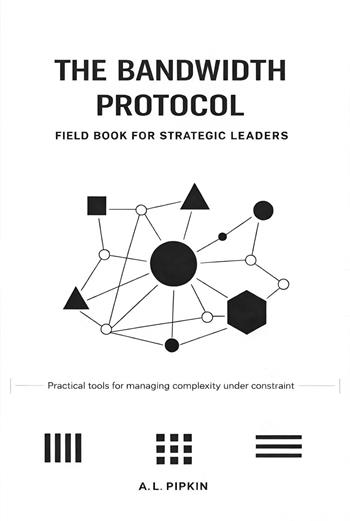 Strategic frameworks fail by assuming unlimited attention, infinite deliberation, and continuous observation. Such assumptions do not persist under constraint. The Bandwidth Protocol: Field Book for Strategic Leaders operationalizes decision instruments for bounded intelligence systems. It registers what persists when observation is sampled, not continuous. This is not motivational literature. No prescriptive assurances are issued. No consolation is offered. The text registers operational patterns derived from observing cognitive and organizational systems under metabolic and structural limits. Contained within are twenty-four deployable protocols and verified case registrations drawn from real organizational environments. Each protocol specifies operating context, deployment conditions, and reproducible forms for immediate application. The work draws alignment from predictive processing, the Free Energy Principle, and Markov Blanket formalism without requiring theoretical background. Tools function whether derivation is understood or not. This field book is a derivative of The Bandwidth Protocol: A System for Bounded Intelligence. It translates theoretical constraints into applied decision instruments. The book terminates without summary or conclusion. The observation window closes. What persists does so without further reference.