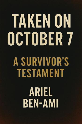 Taken on October 7: A Survivor's Testament is a powerful, intimate account of captivity, survival, and the fragile strength of the human spirit. Written by Ariel Ben-Ami on behalf of a man who was kidnapped during the Hamas attacks and later survived, this book bears witness to events that shattered lives—and to the resilience that followed. The survivor remains anonymous, not out of fear, but out of purpose: this story is not about one name, but about what was endured by many.