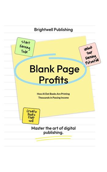 Blank Page Profits How to Turn Free AI Tools into Passive Dot-to-Dot Income—No Experience Needed What if a completely blank page could become your first source of passive income? Blank Page Profits™ reveals a beginner-friendly system to create and publish AI-generated dot-to-dot activity books — and sell them on Amazon KDP with no inventory, no design skills, and no technical overwhelm. This isn't just theory. Inside, you'll learn how regular people are quietly turning simple dot books into daily income using nothing but free tools like Canva and a few smart shortcuts. Inside You'll Discover: ? How to create dot-to-dot images using Canva's free AI ? How to format and publish them for free using Amazon KDP ? The secret behind one dot book making $40,000+/month ? Why "low content" books are dominating the KDP platform ? How to shortcut the process using done-for-you PLR tools ? A passive system that scales — even if you're not an artist, marketer, or "tech person" Whether you're starting from zero, looking for your first $1,000 online, or want a scalable side hustle without showing your face — this blueprint delivers. You don't need an audience. You don't need a product. Just the right method… and it starts with a blank page. ? Download Blank Page Profits™ now and start building your digital asset today.