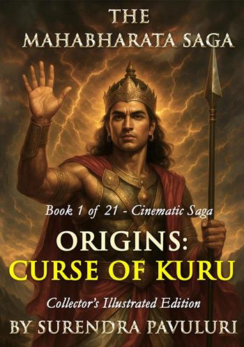 Origins: Curse of Kuru is the first volume in The Mahabharata Saga, a 21-book cinematic retelling of the greatest story ever told. This saga spans generations—kings and queens, gods and warriors, vows and curses—that shape the destiny of the Kuru dynasty and set the stage for the legendary Kurukshetra war.