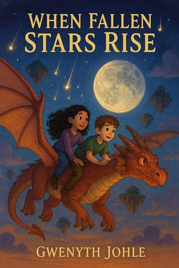 The stars are falling, and no one knows why. In the Islands in the Sky, where dragons carry people between floating islands and the moon's nightly journey wakes the stars, something has gone terribly wrong. The moon has frozen in place. The sky grows darker each day. And one by one, happy golden stars are drifting down, turning angry and red as they fall. Cassidy Starwatcher loves books more than anything. She's read about legends most people have forgotten, including one about a place called Moon Island where the moon dips closest to the world. Her cousin Jack Bright would rather be playing Sky Racket, the island-hopping sport where he and his dragon Fireball are unstoppable. The two barely know each other. But when a furious Fallen Star crashes near their home and gives them the first clue in a trail that might lead to Moon Island, Cassidy and Jack make a choice. While the adults argue about what to do, two cousins and one brave dragon will follow the clues across eleven islands to find out what's wrong with the moon, and whether they can fix it before the sky goes dark forever. They'll face lightning storms and angry stars, puzzles that test their growing teamwork, and a guardian that's protected Moon Island since before anyone can remember. What they discover inside the moon will change everything, but only if they can learn to work together before it's too late. When Fallen Stars Rise is a middle-grade fantasy adventure about two very different kids learning that together they're stronger than apart. For readers who love dragon-filled skies, impossible quests, and the power of kindness in unexpected places.