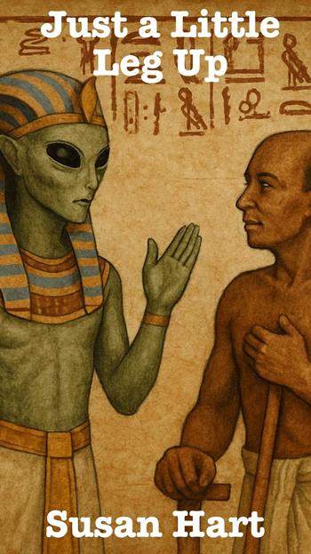 Zzyx's ship gouged a ragged trench into the ochre sand with all the grace of a falling millstone. The charred, smoldering remains left a black wound across the dunes, and the cry of unfamiliar birds circled above the cooling wreckage. Zzyx, shaken but unbroken, slithered out of the lifepod hatch and surveyed the endless, shimmering horizon. Unimpressive. But he'd survived nearer to stars than this, and even the sand's oppressive dryness did not faze him. He patted down his translation module to ensure it survived the atmospheric buffeting—a must if he hoped to do anything but communicate in growls and gestures. A quick systems check in his head: The pod was unsalvageable, his distress beacon was crushed, and his escape time from this primitive rock was measured, at best, in centuries. He squinted at the nearest clump of oddly symmetrical structures. Human settlements. Their design was laughably inefficient, but there was industry at work—smoke rising from clay ovens, humans scurrying with baskets filled with fragrant, golden grain.
