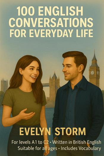 100 English Conversations for Everyday Life is a complete practical guide for mastering spoken English in real life situations. Designed for learners from A1 to C2 levels, this book covers British English through realistic dialogues, essential vocabulary, and natural expressions used in daily life. From ordering coffee and making small talk to discussing future plans and expressing opinions, each conversation is carefully crafted to reflect how native speakers actually communicate in the UK. Alongside every dialogue, you will find key vocabulary lists that help you understand and memorise useful words and idioms. This book is suitable for all ages whether you are a student, traveller, or professional who wants to improve fluency and confidence in English. It's not just about learning grammar; it's about communicating naturally and understanding how English truly sounds in everyday British life. Each unit increases in difficulty, allowing you to progress smoothly from simple beginner interactions (A1) to complex discussions (C2). Whether you are studying independently or using it in the classroom, this resource provides everything you need to build authentic communication skills. Improve your listening, speaking, and vocabulary step by step and discover how enjoyable learning English can be with 100 English Conversations for Everyday Life.