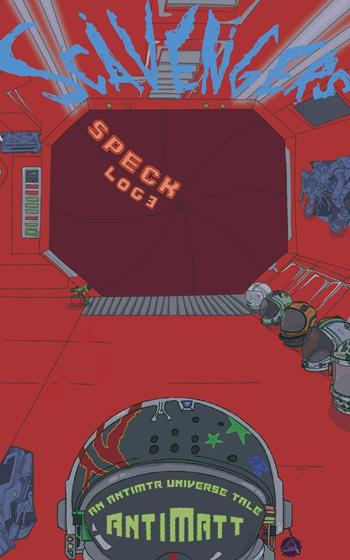 What's to be done when even the vast reaches of the galaxy become a trash dump for MegaCorps that don't want to waste a single chip dealing with their broken toys? At SxS, we do the only thing that makes sense: harvest that sh*t for everything it's worth. The Speck and its crew arrive at their next jobsite–a ridiculously huge abandoned freightliner–with their typical dreams of untold spoils and credit chips for eyes, but, this time, there's something seriously strange going on in space. Log 3 is the stunning conclusion to Scavengers: Speck, and it's a real'a spicy meal'apaste. Scavengers is part of the Antimtr entertainment universe and is an experiment in light, episodic literature for the modern humie's short attention span. Think of it like a TV series, only without the picture… or the sound. Speck was released monthly in 3 60ish page episodes (Logs) and is now complete. Season 2? Maybe everyone died and there's nothing left. No spoilers here. *Individual covers for each log are coming soon... really...* It ended...