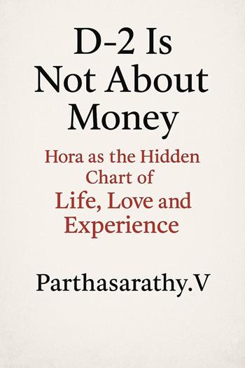D-2 Is Not About Money challenges one of the most entrenched assumptions in Jyoti?a—that the Hora (D-2) chart is only about wealth. In this groundbreaking work, Parthasarathy V reclaims Hora as the chart of life, love, and lived experience, showing that Sun and Moon do not merely divide riches, but divide how pra?a flows through a human life. Moving beyond prediction and psychology, the book explains how Hora governs: how we attach and detach how we experience love, loss, and continuity how authority, responsibility, and endurance shape us why some carry depth while others provide structure why affection, austerity, stability, and longing follow hidden patterns Rooted in classical Jyoti?a yet radically experiential, this book reframes Deva and Pit? Hora as two modes of living, not moral qualities. Through clear frameworks, authentic examples, and disciplined interpretation, the reader learns why Hora explains: relationship patterns that repeat emotional endurance without collapse detachment without bitterness mysticism without delusion and meaning without fatalism This is not a book about predicting outcomes. It is a book about understanding how life is actually lived. A must-read for serious students of Jyoti?a, astrologers, and seekers who sense that charts speak not only of events—but of experience itself.