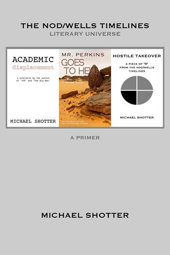 One of the most ambitious and acclaimed speculative-fiction sagas of the modern era, The Nod/Wells Timelines literary universe combines science fiction, horror, the paranormal, and a variety of other sub-genres in an unprecedented manner. Experience three of its most iconic tales in this special-edition "primer," featuring: Academic Displacement - A university administrator finds his idyllic life turned upside down by a dramatic event that appears to change almost nothing about it. "Outstanding! An aptly-named tale (and a riveting story, too). ACADEMIC DISPLACEMENT is another winner from Shotter, and I'm looking forward to more of his fiction. This guy doesn't miss!" – Brian Bowyer, author of SINISTER MIX and METRO KINETIC Mr. Perkins Goes to Hell - "Intriguing tale that follows bank manager Jim Perkins through an alien invasion and interdimensional shift. Not quite just another day at the office. Functions as a standalone story or as a prequel to Shotter's novel, 500 (which is a must read for me now)." – Coy Hall, author of COLOSSUS WITH A POISON TONGUE and THE HANGMAN FEEDS THE JACKAL Hostile Takeover - "This was my first read from the author, and I thoroughly enjoyed my time here. Hostile Takeover is a short, sharp, and refreshingly unique tale of speculative fiction. It centres around a "Big Man's" planned retirement in a rather cutthroat business. I look forward to reading more of Shotter's work and learning more about the Big Men. Brilliantly done!" – Daniel Lorn, author of SEE YOU LATER and PACT