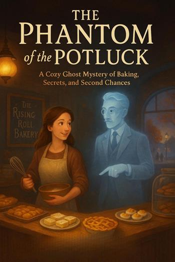 Welcome to Milbrook, a picture-perfect small town where the scent of fresh-baked pies mingles with whispers from the past. When Annie, a spirited young baker opening The Rising Roll Bakery, becomes the reluctant confidant of Arthur, the ghost of Milbrook's founding mayor, her dream of a quiet life crumbles like an overbaked scone. Arthur insists he was murdered fifty years ago—and he's not crossing over until the truth is served. Armed with her whisk, her wits, and a menu of magically inspired pastries, Annie begins to unravel a mystery that stirs up long-buried secrets of love, jealousy, and betrayal. From Memory Lane Lemon Bars to Sweet Treachery Toffee Bars, every recipe leads closer to a revelation that could change Milbrook forever. Heartwarming, witty, and deliciously mysterious, The Phantom of the Potluck blends supernatural charm, emotional depth, and cozy suspense. Perfect for fans of Cleo Coyle, Heather Webber, and Alice Hoffman, this enchanting tale proves that even the sweetest towns can hide the darkest secrets.