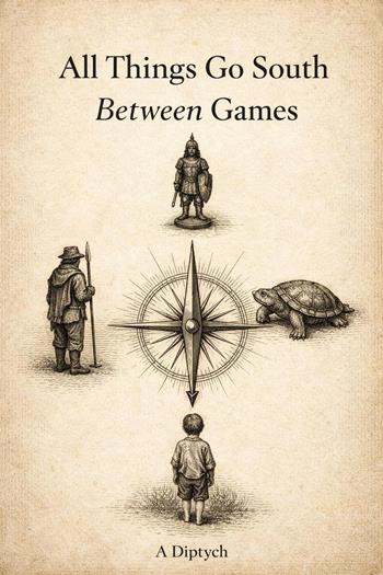 All Things Go South // Between Games A Diptych There are directions we trust without question. Until they stop working. In All Things Go South, a hunter follows a path that seems simple—until space, purpose, and intention begin to drift. Movement becomes uncertain. Orientation dissolves. What begins as a journey becomes something harder to name: a quiet confrontation with the structure of experience itself. In Between Games, a different world unfolds. Players inhabit a reality without death, without finality, without consequence. They can reset, repeat, and rebuild endlessly. But as memory falters and meaning thins, a question emerges: What becomes of a life that cannot end? Across two distinct yet resonant narratives, this collection explores: the relationship between movement and meaning the role of memory in suffering and identity the tension between completion and repetition Precise, atmospheric, and quietly unsettling, All Things Go South // Between Games is a work of philosophical fiction that lingers—less like a story told, and more like a question left open.