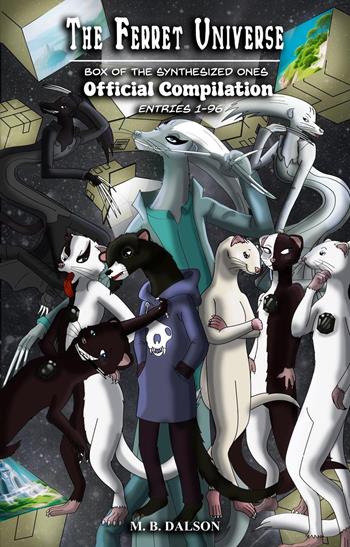 We emerged from a box on a long, wooden table in a dimly-lit room. We turned to see a long line of boxes to our right and left. We saw Lazarai's tail disappear into a box, 9 boxes to our left. Lula and I swirled over—as we passed over the boxes along the way, we noticed they each led to different Pocket Worlds of indoor and outdoor areas. I raised my eyebrow at the box containing a Pocket World of a highway where many beds on wheels traveled around, each carrying sleeping ferrets. I gasped as I passed over the box containing a junkyard full of enflamed gothic ferret dolls that reminded me of Valladonna's dolls. One fell from the sky, hit the ground, and turned to ashes. ABOUT THIS COMPILATION The Ferret Universe: Box of the Synthesized Ones (Official Compilation - Entries 1-96) is a compilation of short-story entries that take place when the ferret-only Universe of Ferretopia is in "Box Status." When Ferretopia is in Box Status, all worlds are accessed through boxes. And the fate of Ferretopia depends on what Zaden, Lula, and Lazarai decide to do with four Synthesized Ferrets: Cole, Nelly, Aris, and Micaiyah. DISCLAIMER: Each entry takes place after the preceding one, but all entries can be read as stand-alone pieces in any order. Whether you are in the mood to read something short and sweet, or explore a longer series of intriguing sequential events, this compilation gives you the best of both worlds. Additionally, as with all series by M.B. Dalson, a happy ending for all characters is already set, positive components of characters' core traits will not change, and relationship statuses and positive components of characters' relationship dynamics will not change throughout the collections. These entries are therefore meant to be a series of events that capture special moments, lighthearted moments, heavy moments, themes, or character dynamics, rather than tell a single narrative.
