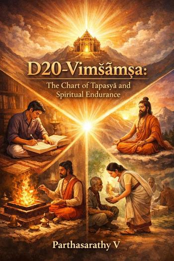 D20–Vi?sa?sa: The Chart of Tapasya and Spiritual Endurance is a practical and original work on the Vi?sa?sa chart as taught by Parasara. This book treats D-20 not as a chart of ritual worship, but as a chart of inner struggle, austerity, fear, endurance, faith collapse, and renewal. It explains why D-20 arises from the eighth-house principle and how it reflects the lived reality of spiritual effort rather than idealised devotion. The book introduces the forty a?sas of D-20 as states of spiritual consciousness, not deities to be worshipped, and shows how planets express Tapasya through these a?sas. Saturn and Ketu are treated as central forces, with clear chapters on Mars, Jupiter, Venus, Mercury, and the Moon in D-20. Practical rules are given for reading signs, houses, a?sas, and combinations without exaggeration or mysticism. Written for working astrologers, the book uses real life case studies, including the author's own chart, to show how spiritual life unfolds through exhaustion, discipline, surrender, and maturity. This is a grounded manual for understanding spiritual endurance as it is actually lived.