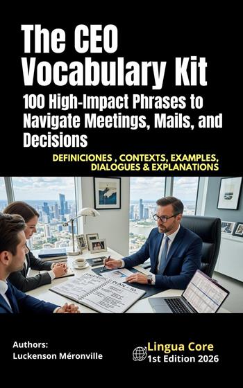 Title: The CEO Vocabulary Kit Subtitle: 100 High-Impact Phrases to Navigate Meetings, Mails, and Decisions Stop managing. Start commanding. In the high-stakes world of executive leadership, your most powerful tool isn't your spreadsheet—it's your voice. A single phrase can align a thousand employees, or it can sow the seeds of confusion and doubt. The CEO Vocabulary is a strategic playbook for the modern leader. Whether you are a first-time founder or a seasoned executive, this guide provides the precise language you need to steer the ship, build a world-class culture, and drive radical accountability. Inside this kit, you will discover: The 5 Pillars of Executive Speech: Master the vocabulary of Strategy, Culture, Execution, Resilience, and Influence. 100 Curated Phrases: From "North Star alignment" to "Zero scenarios," learn the words that top-tier CEOs use to dominate their markets. Meaning & Context: Every phrase comes with a deep dive into its strategic purpose and the exact moment you should use it. Real-World Dialogues: See the vocabulary in action through scripted boardroom and one-on-one scenarios. Leadership Psychology: Understand why these phrases work and how they impact the "Operating System" of your company. In a world filled with corporate noise, clarity is your greatest competitive advantage. The CEO Vocabulary isn't just a book of words—it's a manual for building a legacy. Equip yourself with the language of command. Lead with clarity. Win with conviction.