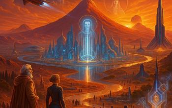 When the first pulse cycles of terraforming reached deep enough, the world answered. The mountain awoke, the valley lit, and two mythic figures stepped out of legend into living resonance: Lord Sanuryamis, Flame of the First Dawn, and Commander Elen, Keeper of the Celestial Gate. They were not gods, but guardians—architects of a lost Martian civilization who had bound their essence to Athurak in a final act of stewardship.