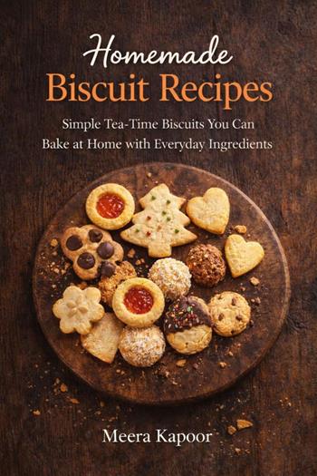 Homemade Biscuit Recipes is the only practical cookbook you need to turn everyday pantry staples into crisp, crumbly, and melt-in-the-mouth biscuits your family will ask for again and again. Whether you're after classic tea-time biscuits, Indian bakery favourites, or healthier oat and whole-wheat options, Meera Kapoor walks you step-by-step through reliable, home-tested methods that work in any kitchen — with or without an oven. Inside you'll find: • Classic tea-time biscuit recipes: buttery rounds, Marie-style crisps, and jam-thumbprints that pair perfectly with chai. • Indian bakery favourites: jeera biscuits, nankhatai-style melts, and wheat-based biscuits with authentic flavours. • Eggless and beginner-friendly options: every recipe includes simple swaps and troubleshooting tips for eggless baking. • Healthy & everyday biscuits: oats, jaggery, multigrain and low-sugar versions that don't sacrifice taste. • No-oven methods: pressure cooker and stovetop recipes so you can bake even without an oven. • Festive and gifting ideas, storage tips, batch-baking guides, and clear troubleshooting notes so every batch turns out great. Each recipe includes ingredient notes, common mistakes, serving suggestions and two easy variations — so you can personalise flavours and scale batches for guests or gifting. The book is written for busy home bakers who want to make bakery-quality biscuits using everyday ingredients, in a warm, encouraging voice that makes baking simple and fun. If you love: homemade cookie jars, Indian tea snacks, eggless baking, easy baking for beginners, and practical, no-fuss recipes — this book is for you. Learn to bake biscuits that are perfect for chai time, packed lunches, school snacks, and festive gift tins. Start with one simple recipe tonight — and soon your home will smell like fresh biscuits every afternoon.