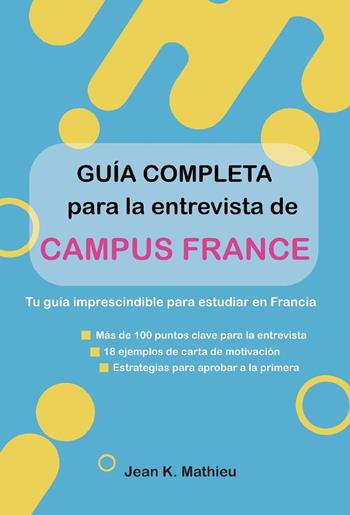 Preparar la entrevista de Campus France requiere mucho más que hablar bien francés: necesitas un proyecto sólido, una estrategia clara y una preparación metódica. Esta guía te ofrece: 100+ puntos clave de la entrevista 18 cartas de motivación en francés 34 preguntas con respuestas modelo Técnicas de manejo del estrés Guía de adaptación cultural Desde la carta de motivación hasta las preguntas difíciles, desde la preparación psicológica hasta la comunicación no verbal — todo lo que necesitas para superar tu entrevista y dar el primer paso hacia Francia. Dirigido a: Candidatos a la entrevista de Campus France Estudiantes que preparan su solicitud a universidades francesas Hispanohablantes que quieren mejorar en entrevistas en francés Sobre el autor: Jean K. Mathieu, especialista en enseñanza del francés. Años de experiencia en preparación de exámenes y entrevistas. Ha ayudado a cientos de estudiantes a aprobar el DELF, el TEF y entrevistas de admisión en Francia.