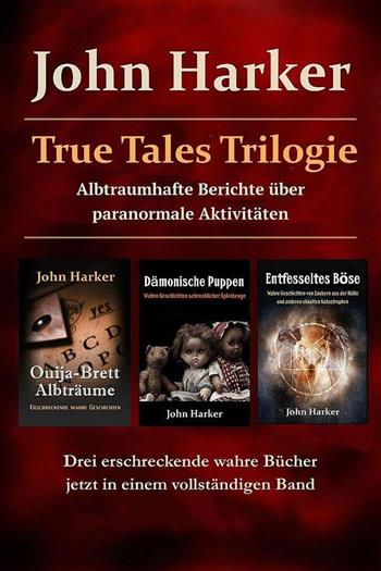 Erstaunliche wahre Geschichten paranormaler Albträume! Von teuflischen Puppen und verfluchten Ouija-Brettern bis hin zu Hexerei mit katastrophalen Folgen und verhängnisvollen dämonischen Pakten: True Tales Trilogy deckt ein breites Spektrum okkulter Begegnungen ab, die in Horror, Leid und Tragödien enden. Wenn sich ein roter Faden durch diese Sammlung zieht, dann dieser: Wer mit dem Feuer spielt, wird sich verbrennen. In diesem praktischen Sammelband erhalten Sie die vollständigen Ausgaben der folgenden Bücher: Ouija-Brett Albträume: Erschreckende wahre Geschichten Dämonische Puppen: Wahre Geschichten schrecklicher Spielzeuge Entfesseltes Böse: Wahre Geschichten von Zaubern aus der Hölle und anderen okkulten Katastrophen In der Tradition paranormaler Experten und Autoren wie Gabriele Amorth, Ed und Lorraine Warren sowie Zak Bagans fesselt Autor John Harker seine Leser mit packenden Berichten über dämonische und geisterhafte Aktivitäten. Gleichzeitig spricht er Warnungen aus und gibt Ratschläge an all jene, die mit dem Okkulten liebäugeln – oder bereits in dessen Fänge geraten sind. Ouija-Brett Albträume Seit über einem Jahrhundert zieht das Ouija-Brett die Aufmerksamkeit ganz unterschiedlicher Menschen auf sich: paranormaler Nervenkitzel suchende Abenteurer, neugierige Jugendliche, impulsive Teenager, angeheiterte Partygäste und sogar skeptische Zweifler. In den meisten Fällen erleben jene, die mit Ouija- oder anderen Spiritismusbrettern experimentieren, nichts Ungewöhnliches. Doch oft ist genau das nicht der Fall. Und ebenso oft sind diese außergewöhnlichen Erlebnisse nicht nur seltsam, sondern schlichtweg erschreckend. Ouija-Brett Albträume beleuchtet einige dieser furchterregenden Erfahrungen – von alptraumhaften Erscheinungen über tatsächliche körperliche Angriffe bis hin zu dämonischer Besessenheit. Ein Teil der Absicht des Autors besteht darin, diese schaurigen Berichte zu dokumentieren und zu vermitteln; das Hauptziel jedoch ist eine klare Warnung. Auch wenn das Ouija-Brett als harmloses Spiel vermarktet wird, ist es genau das nicht. Sollten die Berichte in diesem Buch Sie davon nicht überzeugen, wird es nichts tun. Dämonische Puppen Können Puppen wirklich von Geistern heimgesucht werden? Können Dämonen Besitz von Spielzeugen ergreifen? Laut zahlreicher paranormaler Ermittler, Exorzisten und Dämonologen lautet die Antwort eindeutig: ja. Solche Phänomene sind nicht nur möglich, sie treten erstaunlich häufig auf – wobei Puppen zu den häufigsten Objekten gehören, an die sich Geister binden. Manche dieser Wesen sind harmlos oder bestenfalls schelmisch. Viele jedoch sind offen bösartig und gefährlich. Dieses Buch untersucht einige der berühmtesten verfluchten Puppen der Welt. Von manchen haben Sie vielleicht schon gehört. Andere werden Ihnen neu sein. Alle jedoch werden Ihr Bild von der Welt, wie Sie sie zu kennen glaubten, nachhaltig erschüttern. Entfesseltes Böse Das Okkulte bedeutet für jeden etwas anderes. Für manche ist es ein Weg zur Erleuchtung. Andere sehen darin eine Quelle persönlicher Transformation. Wieder andere betrachten es als ein Tor zum Teufel. Über diese Unterschiede ließe sich endlos diskutieren – doch eines ist unbestreitbar: Das Okkulte ist gefährlich. Es öffnet Kanäle, die besser verschlossen blieben. Es zieht Wesen an, die sich nicht an Regeln halten. Und es fordert immer mehr – stets mehr, als ursprünglich vereinbart war.