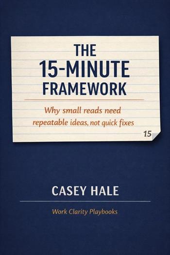 Short books promise quick transformation. And yet people keep buying more of them—because the problem isn't a lack of advice. It's that most advice isn't built to be reused. The 15-Minute Framework is a calm, practical argument for a different contract: short reads that deliver repeatable ideas, not one-time fixes. This isn't a productivity manifesto. It's a lightweight operating manual for turning "helpful insights" into weekly practice—especially in the places work tends to break down: unclear ownership, fuzzy decisions, and endless threads that never quite resolve. Across fourteen tight chapters, Casey Hale breaks down why "finishing" a short read can feel like progress while the underlying friction returns unchanged. Then the book offers a simple alternative: keep a small kit of reusable lines and moves that fit inside ordinary workflows—meeting endings, handoffs, approvals, and decision notes. Inside, you'll find: A clear distinction between speed and haste (and why speed isn't the real problem) Why one strong idea beats ten tips when the constraint is coordination How "advice" becomes noise when it multiplies options but doesn't narrow action A minimum viable framework for decisions: decision, owner, due time, record location Practices that survive busy weeks—without discipline theater The "return problem": why the same issues come back, and how to make returns cheap A way to read short books differently so ideas land inside the work, not above it The aim is modest and useful: fewer reruns of the same debate, fewer "just checking" threads, fewer meetings scheduled to clarify what could have been written once. If you're tired of advice density and quick-fix promises, this book offers something steadier: a repeatable lens that makes work lighter by making ownership, decisions, and communication explicit. Clarity beats theater.