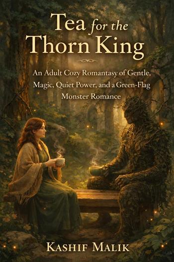 Elowen Hale has built a quiet, intentional life—one shaped by choice rather than obligation. As an herbalist, she believes that care should never cost autonomy, and that healing begins with listening. So when she is invited to the Thorn Court to serve as a wellness keeper to its reclusive ruler, she accepts on her own terms. The Thorn King is ancient and powerful, bound to a living forest that responds to his every state of being. For centuries, restraint has been his only method of safety. Distance, his only form of peace. He does not seek saving, devotion, or sacrifice—only balance. What unfolds between them is not a tale of destiny or conquest, but of deliberate connection. Through shared tea, gentle routines, and conversations shaped by respect, Elowen and the Thorn King begin to build something different: a bond rooted in consent, emotional honesty, and mutual choice. There are no wars to fight and no looming catastrophes—only the quiet, meaningful work of learning how to rest, how to ask, and how to remain present without losing oneself. Tea for the Thorn King is an adult cozy romantasy about gentle magic, quiet power, and the courage it takes to choose care over control. Perfect for readers who enjoy: Cozy, low-stakes fantasy Adult protagonists and emotionally healthy relationships Slow-burn connection without explicit content Slice-of-life magic and comforting rituals Stories where boundaries are honored and gentleness matters Approximate length: 60,000 words Make yourself a cup of tea. The forest will wait.