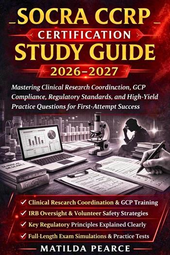Clinical research lies at the heart of modern medicine. Every treatment, therapy, and medical device reaches patients only after careful investigation, strict oversight, and the work of professionals trained to protect participants while producing reliable scientific evidence. For those preparing to earn this respected credential, success requires more than scattered notes or surface-level review. It requires a structured guide that explains complex principles clearly while building confidence for exam performance. SOCRA CCRP Certification Study Guide 2026–2027 provides that preparation. Designed for both aspiring and practicing clinical research professionals, this guide presents a clear path toward mastering the knowledge required for work in regulated biomedical investigations. It explores the principles that guide ethical human subject protection, regulatory oversight, study coordination, safety monitoring, and professional responsibility. Readers move through the same core domains that define real clinical research practice. Early chapters build a strong foundation by explaining how biomedical investigations developed, how trial phases contribute to medical advancement, and how research teams collaborate in complex study environments. The discussion then turns to ethical responsibilities, including volunteer protection, informed consent, and the oversight role of independent review boards. Regulatory frameworks and international standards are explained in practical language. Readers gain insight into how global guidance shapes research practices, how federal rules influence trial conduct, and how investigators and sponsors maintain compliance throughout a study lifecycle. Operational topics bring readers inside the daily work of research professionals. The guide explains protocol interpretation, site preparation, participant recruitment, and investigational product management. It also highlights accurate documentation practices, deviation management, and the importance of maintaining transparent records. Safety monitoring and data oversight form another important part of preparation. These sections explain adverse event evaluation, reporting timelines, monitoring approaches, query resolution, and quality systems that protect both participant safety and data reliability. Administrative responsibilities are also covered, including budget planning, contractual agreements, billing compliance, and resource coordination required to support successful study execution. Preparation extends beyond theory. The final portion of the guide focuses on exam readiness through realistic practice. Full-length tests reflect the reasoning style of the certification exam, while scenario-based questions challenge readers to apply knowledge in practical situations. Detailed explanations reinforce understanding and strengthen analytical thinking. Quick-reference charts and regulatory summaries help readers review essential topics efficiently before the exam. A structured review strategy supports effective study planning and helps candidates approach the test with clarity and confidence. By the end of this guide, readers will have developed a stronger understanding of the systems governing ethical biomedical investigation and the responsibilities expected from clinical research professionals. This guide is designed for: • Professionals preparing for CCRP certification • Clinical research coordinators seeking structured review • Investigators and research staff strengthening regulatory knowledge • Students entering biomedical investigation careers • Healthcare professionals transitioning into research roles Clear explanations, practical examples, and focused exam preparation combine to create a resource that supports both understanding and performance for those committed to advancing safe and ethical clinical research.