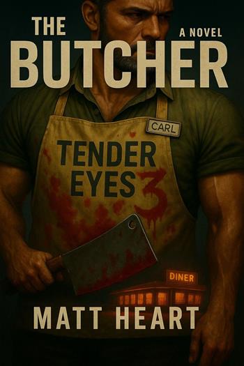 Tender Eyes 3 The Butcher a novel by Matt Heart Long before Tender Eyes became a town known for its eloquent cuisine, it was a place trying to survive. Winter tightened its grip. Food ran low. Families did what they had to do to endure. Then Barton Russell Farmer arrived—offering order, protection, and answers for a community already on the edge. What he brought with him was something far worse than hunger. As desperation deepens, the Bartolucci family finds itself caught in the birth of something unnatural—where grief is manipulated, flesh becomes currency, and survival demands more than anyone should be willing to give. One quiet decision at a time, Tender Eyes is transformed from a struggling settlement into the foundation of a nightmare. Because evil didn't begin in Tender Eyes with madness.-- It began with meat. Tender Eyes 3: The Butcher is the brutal prequel to the Tender Eyes series—revealing how the hunger started, who fed it, and why some towns should have been left to die.