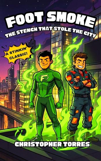FOOT SMOKE: The Stench That Stole the City (Foot Smoke #2) A Superhero Story Where the Power STINKS (Literally) When Foot Smoke develops the world's weirdest superpower—sweaty feet that emit clouds of stinky fog—he's sure he'll be the laughingstock of Valor City. But when people start vanishing into the sewers, leaving behind only a horrible, mind-controlling stench, Foot Smoke realizes his disgusting ability might be the only thing that can stop: STENCH - A sewer-dwelling villain turning citizens into blank-eyed zombies with his noxious fumes With the help of: ?? Jawbreaker - A metal-chomping sidekick with more jokes than sense ? Flora - A waitress-turned-hero armed with lemon-scented spray and attitude ?? His own stinky sneakers - The grossest weapons in Valor City Foot Smoke must: ?? Battle an army of stink-controlled rats ?? Navigate the city's grossest sewers ?? Learn to embrace his stench before the whole city falls under Stench's foul control Perfect for fans of: The Bad Guys series Dog Man Captain Underpants Warning: Reading may cause uncontrollable laughter and sudden urges to check your shoes. Book 2 in the action-packed FOOT SMOKE series!
