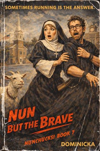 When the town of Spirit Pines starts smiling a little too perfectly, Sister Mary Mercy can smell trouble—a problem, since the town wants her to be a more "pleasant" person. A mysterious teen recruitment movement has swept the American Midwest, backed by shining megachurch energy, pastel drones, and spiritual synergy levels so aggressive they might violate international law. But beneath the surface lies something far worse: Elsewhere—a reality-warping force that steals stories, rewrites memories, and wants to turn humanity into tidy little narratives. When Lily is nearly absorbed into the cult of good vibes, the Sisters of Perpetual Enforcement discover that Spirit Pines has been built on a single stolen life: Ellie Graceland, a girl whose memories were harvested to create a perfect template town. To save her—and everyone trapped inside—a vow-dampened Mercy must face weaponized positivity, emotionally hostile architecture, hologram youth pastors, brochure swarms, and Spirit Pines' disturbingly flawless welcome team. But as Elsewhere collapses, Mercy becomes the one thing the narrative can't parse: a contradiction with free will, sharp edges, and a vow that refuses to be edited. Armed with paradox, friendship, rage, and one very civic-minded goat, the Sisters will tear down the Template, rescue Ellie from literal erasure, and prove that imperfect, messy humanity is worth fighting for—even if it means punching a megachurch so hard it becomes a crater. In a story warped by the void, the only thing that makes sense… is a nun who won't.