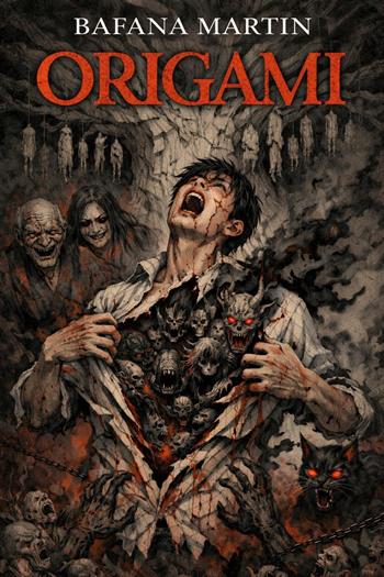 Origami by Bafana Martin In the crowded streets of Japan, Takumi Nagamoto lives a life of quiet desperation. A lowly office worker, barely scraping by, he endures a crumbling apartment, a hostile landlord, and a world that seems to mock him at every turn. His only solace is Ori, his loyal cat—until the shadows begin to stir. One night, a chance encounter at an abandoned subway station changes everything. An ancient, hooded demon—Origami—possesses him, marking his body and twisting his reality. Dreams and waking life blur, revealing a world of blood-flowered trees, chained souls, and a neighborhood that never truly existed. As birds die at his touch and animals recoil in fear, Takumi must confront terrifying truths about his past, his life, and the curse that has silently guided him since childhood. Guided by a mysterious shaman, he embarks on a journey into the Mountains of Death, following spiraling caves into the underworld, where illusions crumble and the horrors of Origami are fully revealed. Here, nothing is as it seems: the cat he loves, the people he knows, even the streets he walks are all part of a centuries-old curse. Origami is a chilling descent into a Japanese-inspired world of supernatural horror, blending psychological terror with cosmic dread. As reality folds and the tree of death waits, Takumi must face the ultimate choice—resist, destroy, or be consumed by the abyss. Prepare to enter a world where the lines between life, death, and illusion are folded into one terrifying axis—and nothing is safe from the power of Origami.