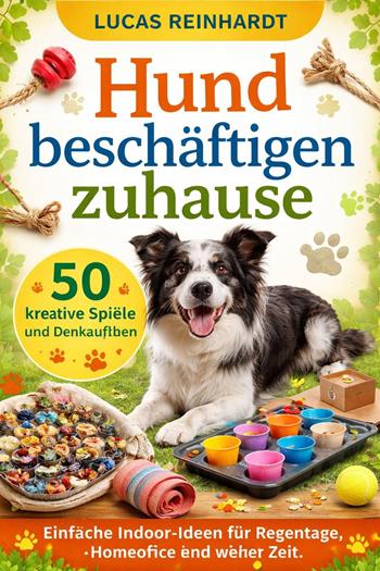 Ist dein Hund zuhause oft unruhig, gelangweilt oder sucht sich selbst Beschäftigung? Viele Hunde bekommen draußen Bewegung – aber im Haus fehlt ihnen oft geistige Auslastung. Besonders an Regentagen, im Homeoffice oder wenn wenig Zeit bleibt, entsteht schnell Frust. Die Folge: Bellen, Zerstörungswut, Unruhe oder ständiges Fordern von Aufmerksamkeit. Dieses Buch zeigt dir 50 kreative Spiele und Denkaufgaben, mit denen du deinen Hund zuhause sinnvoll beschäftigen kannst – einfach, alltagstauglich und ohne teures Zubehör. Du findest darin: • Intelligenzspiele für Hunde im Wohnzimmer • Schnüffelspiele und Nasenarbeit für drinnen • Denkaufgaben mit Alltagsgegenständen • Ruhige Beschäftigungsideen für Regentage • Mini-Spiele für 5–10 Minuten zwischendurch • Kreative Indoor-Aktivitäten für Welpen und erwachsene Hunde • Ideen speziell für Homeoffice-Tage Die Spiele sind so aufgebaut, dass du sofort starten kannst – auch wenn du wenig Zeit hast. Jede Idee fördert Konzentration, Problemlösefähigkeit und mentale Auslastung. Denn ein geistig ausgelasteter Hund ist entspannter, zufriedener und ausgeglichener. Ob junger Wirbelwind oder erwachsener Familienhund – dieses Buch hilft dir, Langeweile zu vermeiden und eine stärkere Bindung aufzubauen. Praktisch. Umsetzbar. Alltagstauglich.