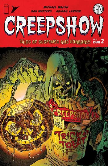 CREEPSHOW is back with two more terrifying tales! First, MICHAEL WALSH (THE SILVER COIN) broadcasts a chilling yarn about a down-on-his-luck dad and his son’s obsession with TV in “The Man With No Eyes“! Then, DAN WATTERS (HOMESICK PILOTS, Arkham City) and Hugo Award-winning illustrator ABIGAIL LARSON (Sandman Universe: The Dreaming) will render you speechless with the story of a young woman burdened and the price she’ll pay for silence in “Stop Haunting Me“!