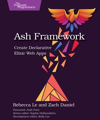 Ash Framework is the game-changing toolkit for Elixir developers. With modular, plug-and-play building blocks, Ash slashes development time, effort, and complexity, letting you do more with less code. Design declarative, customizable domain models that are easy to maintain and optimized for performance. Shift your focus to what to build, instead of how, using Ash's intuitive design principles. Tackle bigger challenges and build scalable, future-proof web applications with confidence. Elevate your Elixir skills and revolutionize your workflow with Ash. Discover a dynamic new way to build web applications with Elixir and Ash Framework. Ash enables you to structure and organize the code you write in a declarative programming style so you can build functionality more quickly and answer complex questions about data more easily. Start with a Phoenix LiveView app and grow it into a fully functional system as you master Ash's core principles. You'll build the domain model for a music database throughout the book. As you create this model, you'll learn how to define resources with ease, connect them through adaptable relationships, and enrich your models with calculated attributes and aggregates to make your data work smarter. Secure your app with seamless authentication and authorization policies that integrate cleanly across APIs and user interfaces. Skip the busywork by generating REST and GraphQL APIs from your resources, freeing you to focus on building standout features. From dynamic search and nested forms to pubsub and real-time updates, you'll explore practical, real-world scenarios at every turn. Coauthored by the creator of Ash, this book is packed with insider knowledge, best practices, and actionable guidance to get you started fast. By the end, you'll have the skills and confidence to create applications that grow with your needs. What You Need: The book will use and show outputs from the latest versions of Elixir and Erlang, but earlier versions will be supported. Minimum versions: Elixir 1.15, Erlang/OTP 26, PostgreSQL 14