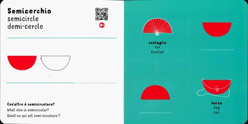 Una proposta innovativa per accompagnare i più piccoli alla scoperta delle forme attraverso disegni coloratissimi. Ognuna di esse è indicata in tre lingue diverse: italiano, inglese e francese. Oltre a poter leggere e scrivere le parole nelle tre lingue, il bambino potrà ascoltarne la corretta pronuncia per ciascuno dei tre idiomi attraverso la voce di un madrelingua. Questo grazie alla presenza, per ogni forma, di un QR Code che consente di accedere direttamente all'ascolto delle registrazioni. Un modo originale e divertente per imparare anche tante parole nuove in due fra le lingue più parlate al mondo. Età di lettura: da 3 anni.