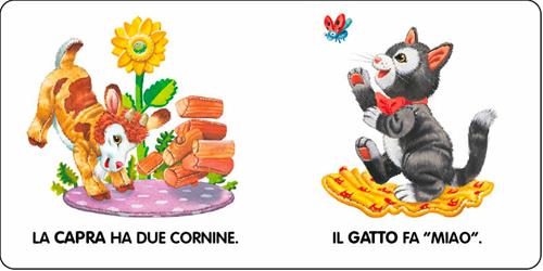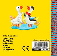Un libretto piccino piccino, con tante illustrazioni chiare e divertenti: gli animali della fattoria illustrati come morbidi peluche di cui il bambino riconosce il nome. Per ogni animale della fattoria, il suo verso. Età di lettura: da 3 anni.