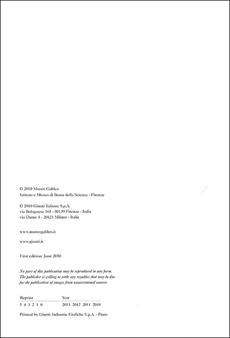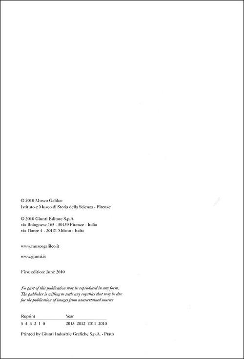Veri capolavori di arte e di scienza, gli strumenti scientifici del Museo Galileo, raccolti nell'arco di circa tre secoli dai Medici e dai Lorena, costituiscono nel loro genere non solo la raccolta più significativa del Paese, ma anche una delle più importanti del mondo. Questa straordinaria collezione illustra il progressivo perfezionamento degli strumenti di osservazione e di misura e degli apparati sperimentali che, grazie all'impegno congiunto di ricercatori di eccezionale competenza e di artefici di grande talento, favorì l'enorme avanzamento delle conoscenze scientifiche nei secoli XVI e XVII. Le sale espositive del rinnovato Museo Galileo conducono il visitatore in un suggestivo viaggio alla scoperta degli strumenti, degli esperimenti e dei protagonisti - primo fra tutti Galileo - che offrirono un contributo determinante all'affermazione della scienza moderna. Edizione inglese.