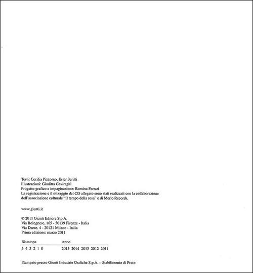 Questo libro, corredato da CD audio e illustrato con colori vivaci, è pensato per la prima educazione musicale dei bambini. Il Cd contiene brani "delicati" e nello stesso tempo vivaci, affinché stimolino una reazione emotiva e motoria che si contrapponga a quella che può derivare dall'ascolto dalla musica aggressiva e banale proposta dai media. Il canto assume la funzione di dialogo adulto-bambino e costituisce una gradevole occasione di una prima lettura per immagini. Il bambino ascolta i vari canti osservando la grafica e successivamente, in modo graduale li intonerà. Età di lettura: da 3 anni.