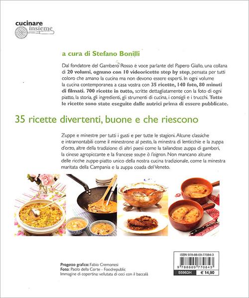 Dal fondatore del Gambero Rosso e voce parlante del blog "Papero Giallo!, una collana di 20 volumi, ognuno con 10 videoricette step by step, pensata per tutti coloro che amano la cucina ma non devono essere esperti. In ogni volume la cucina contemporanea a casa vostra con 35 ricette, 140 foto, 80 minuti di filmati. 700 ricette in tutto, scritte dettagliatamente con la foto di ogni piatto, la storia, gli ingredienti, gli strumenti di cucina, i consigli e i trucchi. Fino a non molti anni fa le zuppe erano la base della nostra alimentazione, poi sono state in parte abbandonate in favore della pasta. Tuttavia l'atavico richiamo della minestra resiste ancora in molti di noi e questo libro vuole essere un invito a riscoprire le nostre tradizioni e a ritrovare il piacere di gustare una bella zuppa calda in una serata di pioggia. Con le verdure, con i legumi, con il brodo di carne: tante ricette sia tradizionali che più creative e moderne, con un capitolo dedicato alle zuppe di altri paesi.
