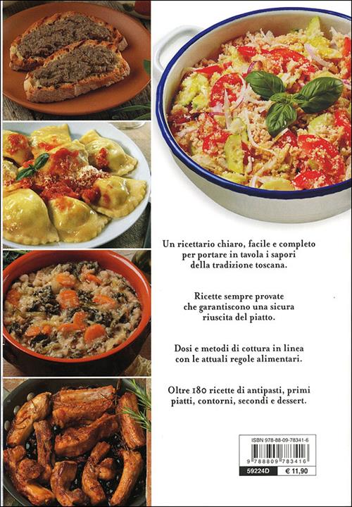 Un ricettario chiaro, facile e completo per portare in tavola i sapori della tradizione toscana. Ricette sempre provate che garantiscono una sicura riuscita del piatto. Dosi e metodi di cottura in linea con le attuali regole alimentari. Oltre 180 ricette di antipasti, primi piatti, contorni, secondi e dessert.