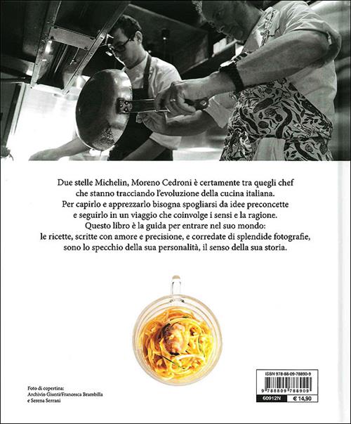 Moreno Cedroni, chef molto apprezzato dal pubblico e dai critici, è fra quelli che, in prima persona, stanno tracciando l'evoluzione della cucina italiana. Per comprenderne il valore bisogna lasciarsi alle spalle le idee preconcette e seguirlo in un viaggio che coinvolge i sensi e la ragione: 80 ricette originali, illustrate con foto di altissima qualità, suddivise a seconda dei menu dei suoi differenti ristoranti, ci offrono un ricettario completo e realizzabile dell'intero mondo di Cedroni, dove la sua inesauribile creatività dichiara un forte legame alle tradizioni e al territorio: il mare e la costa marchigiana. Genialità e rigore, passione e metodo, carne e pesce: questo è Moreno, e niente in lui si può delimitare, codificare, semplificare. Oggi è fra gli chef italiani "non-televisivi" meglio individuati anche dal pubblico, per la sua personalità informale e la sua cifra stilistica inconfondibile: uno dei personaggi più stimolanti nel mondo dell'alta cucina.