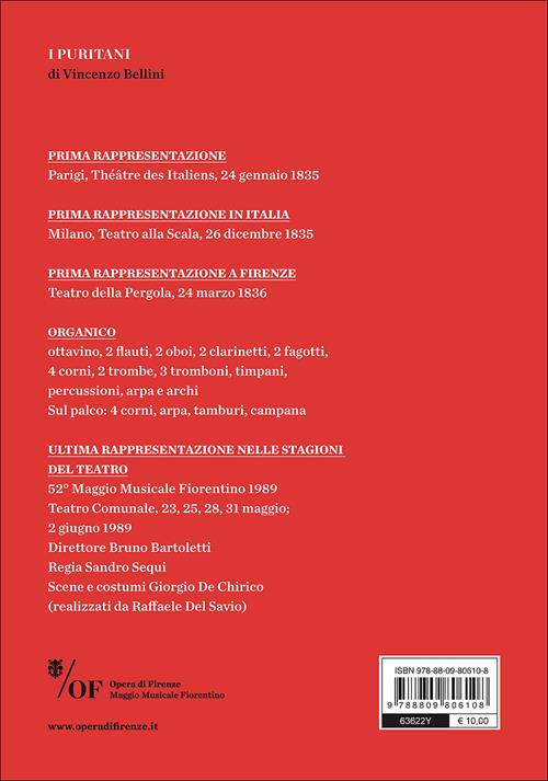 I Puritani di Vincenzo Bellini: opera seria in tre parti di Carlo Pepoli. Musica di Vincenzo Bellini. Matteo Beltrami direttore. Regia di Fabio Ceresa, scene di Tiziano Santi. Orchestra e Coro del Maggio Musicale Fiorentino. Maestro del Coro Lorenzo Fratini.