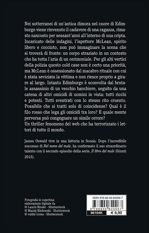 Nei sotterranei di un'antica dimora nel cuore di Edimburgo viene rinvenuto il cadavere di una ragazza, rimasto nascosto per sessant'anni all'interno di una cripta. Incaricato delle indagini, l'ispettore McLean, spirito libero e cocciuto, non può immaginare la scena che si troverà di fronte: un corpo straziato in un contesto che ha tutta l'aria di un cerimoniale. Per gli alti vertici della polizia questo cold case non è certo una priorità, ma McLean è ossessionato dal macabro rituale con cui è stata seviziata la vittima e non riesce proprio a girare al largo. Intanto Edimburgo è sconvolta dal brutale assassinio di un vecchio banchiere, seguito da una catena di altri omicidi di uomini in vista: tutti ricchi e potenti. Tutti sventrati con lo stesso rito cruento. Possibile che si tratti solo di coincidenze? Qual è il filo rosso che lega gli omicidi tra loro? E quale mente perversa può congegnare un simile orrore?